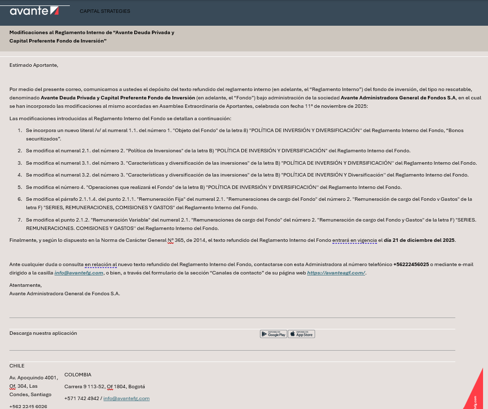 Ficha Avante Deuda Privada y Capital Preferente FI Diciembre 2025